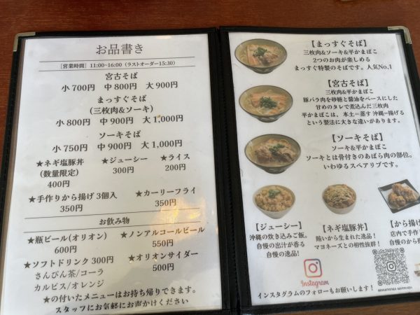 看板メニューはもちろん「宮古そば」。