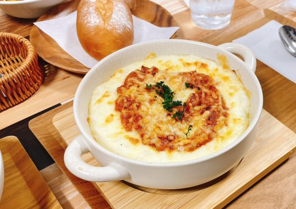 グラタンは、表面がこんがり焼かれていて、中はとろとろ。