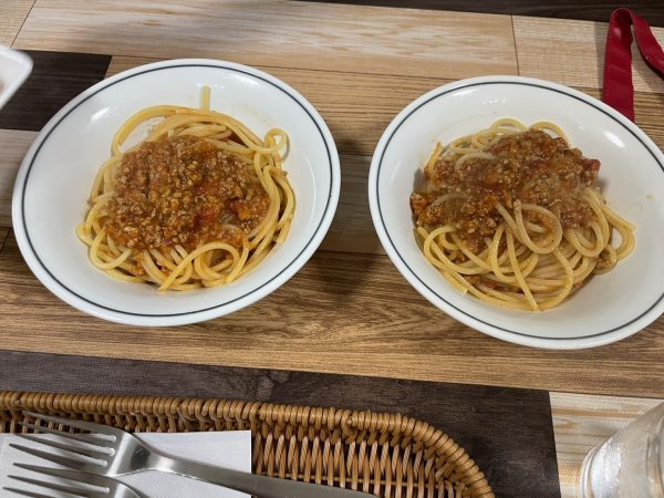 子どもたちには、メニューには載っていないミートスパゲッティを特別に作っていただきました。