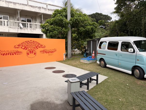 お店の横には、大きな亀のイラストが描かれた写真スポットがあり、