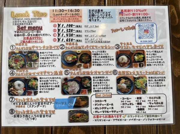 サラダとスープにドリンクも付いて、島民割を利用して1,280円。とてもお得に感じました。