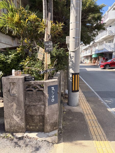 ブロック塀に取り付けられた「スシマロ」の小さな看板が目印です。
